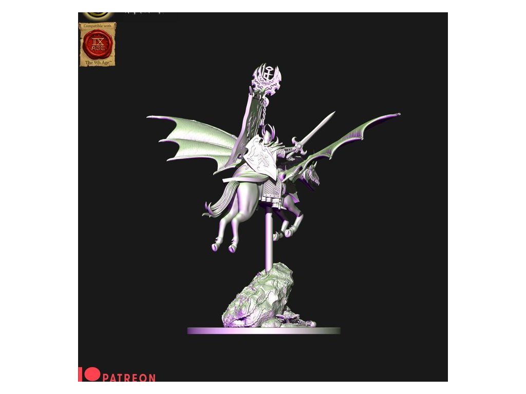Dark elves hero with banner on Nightmare pegasus (digital file)