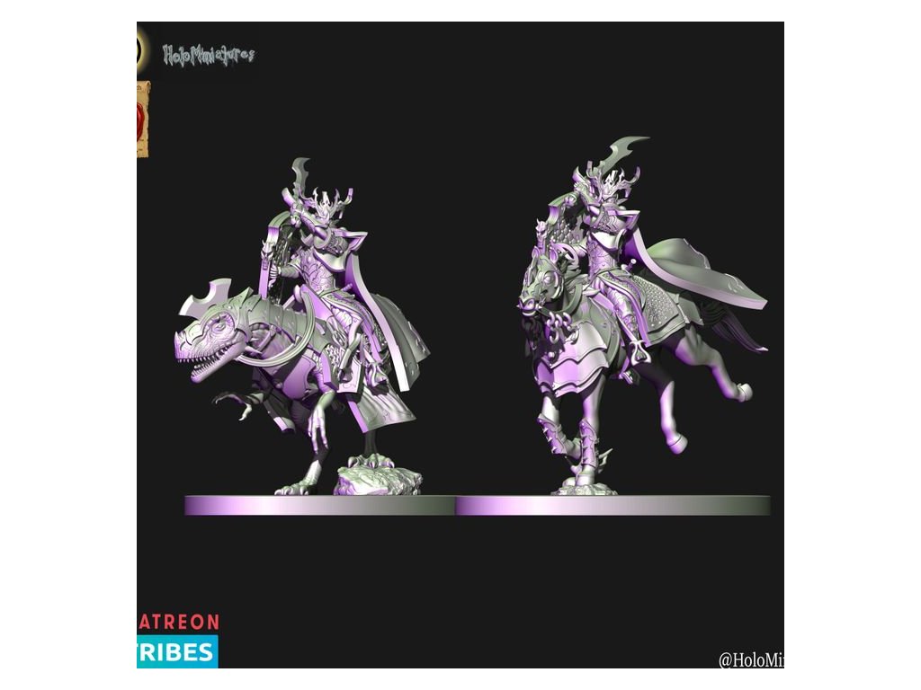 This pack contains 1x dark elves Dreadlord on raptor and 1x Dark elves Dreadlord on horse. Miniatures comes presupported in 28mm and 32mm scale.