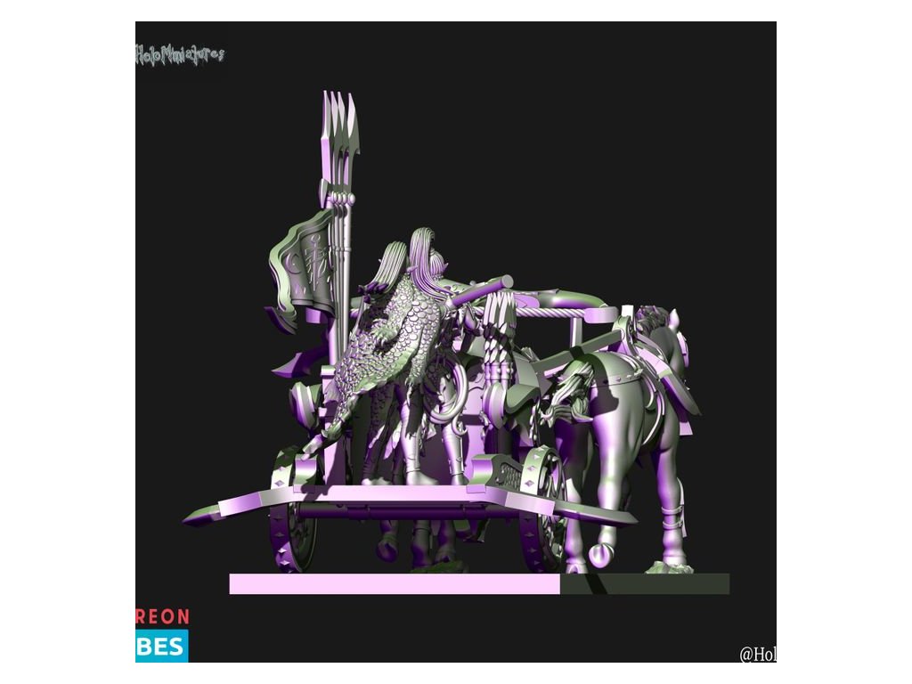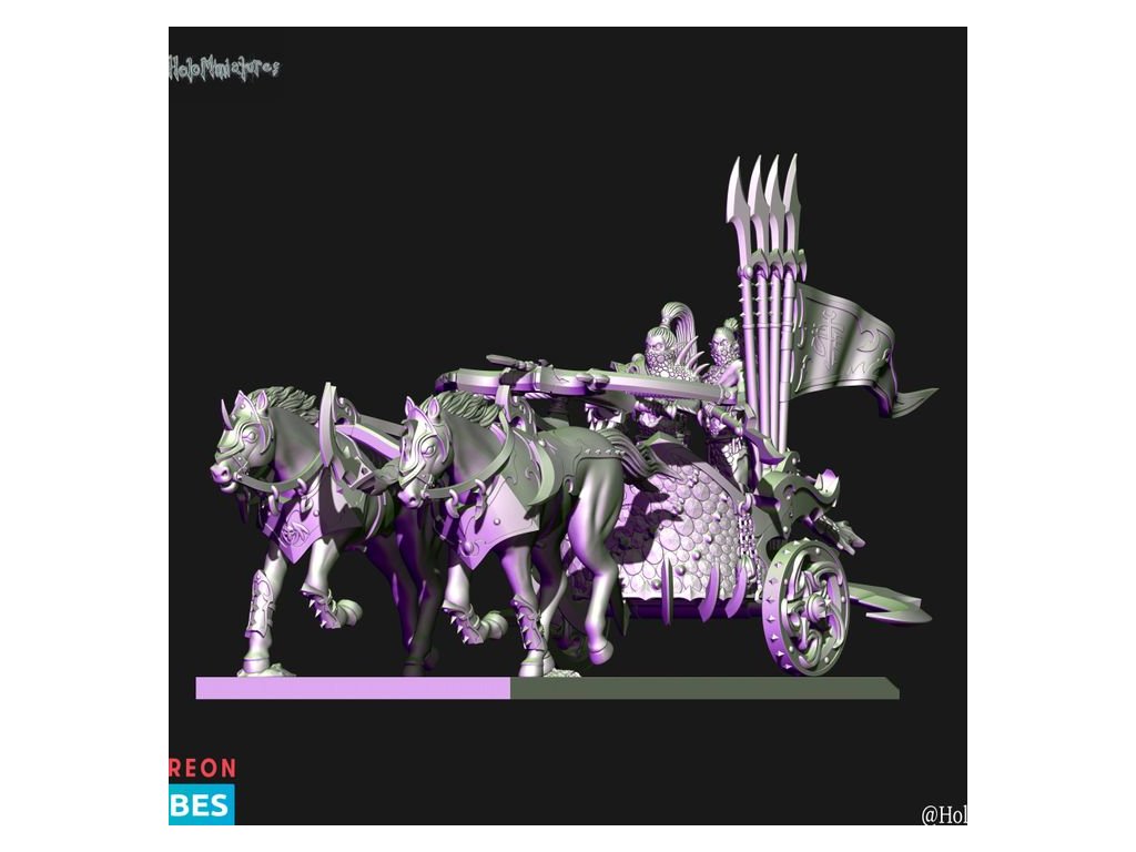 This pack contains 1x Dark elves Hunting chariot. Miniature comes presupported in 28mm and 32mm scale.