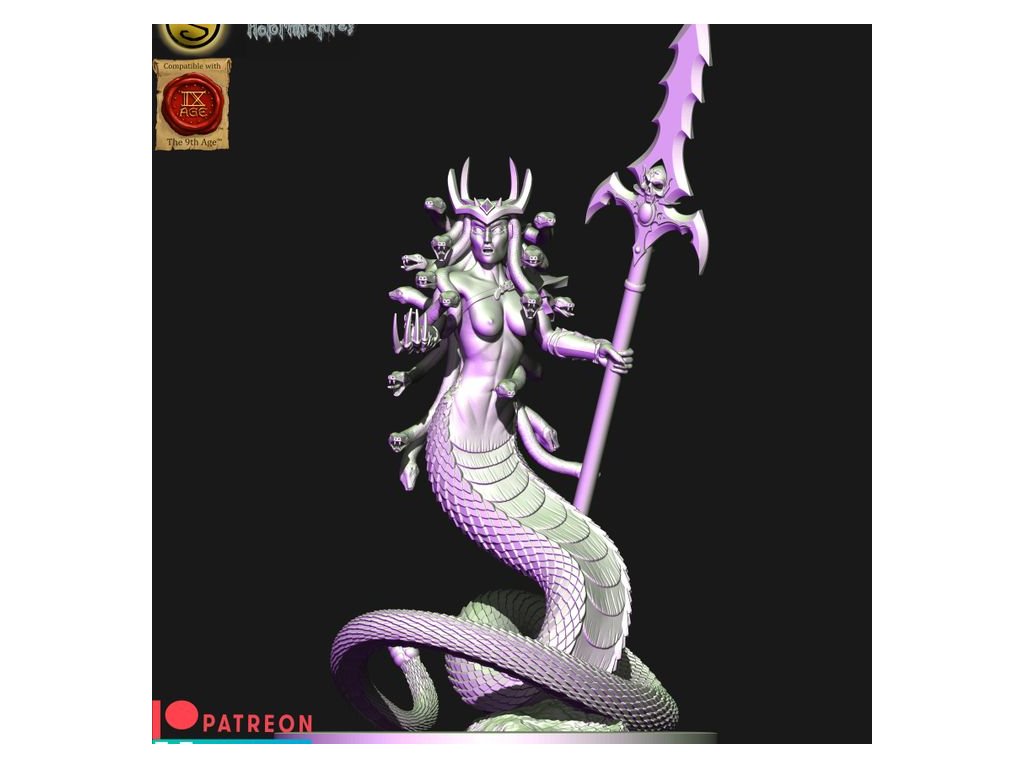 This pack contains 1x dark elves Medusa. Miniatures comes presupported in 28mm and 32mm scale.