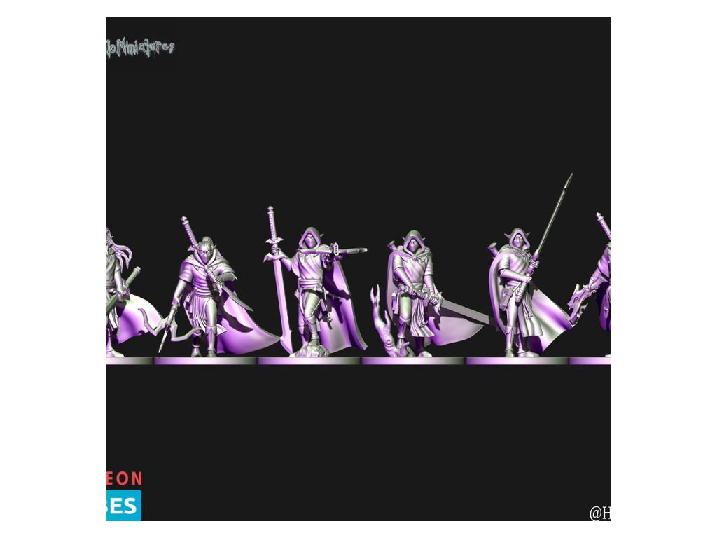 This pack contains 6x Dark elves Raven cloacks with great weapons. minaiatures comes presupported in 28mm and 32mm scale