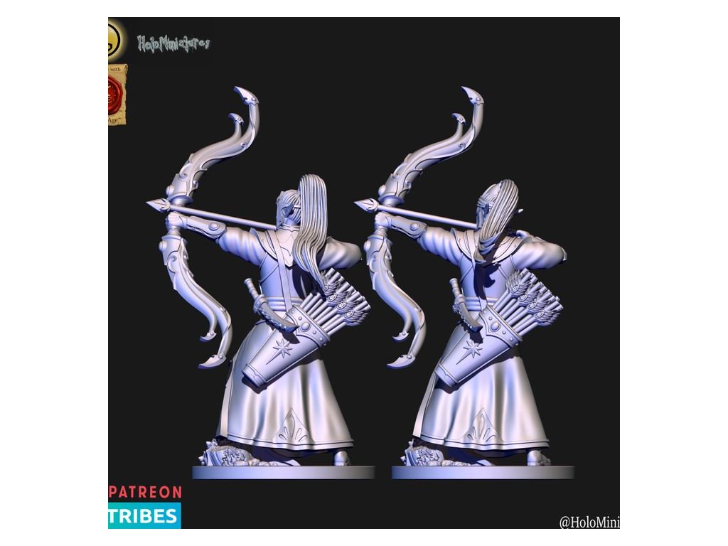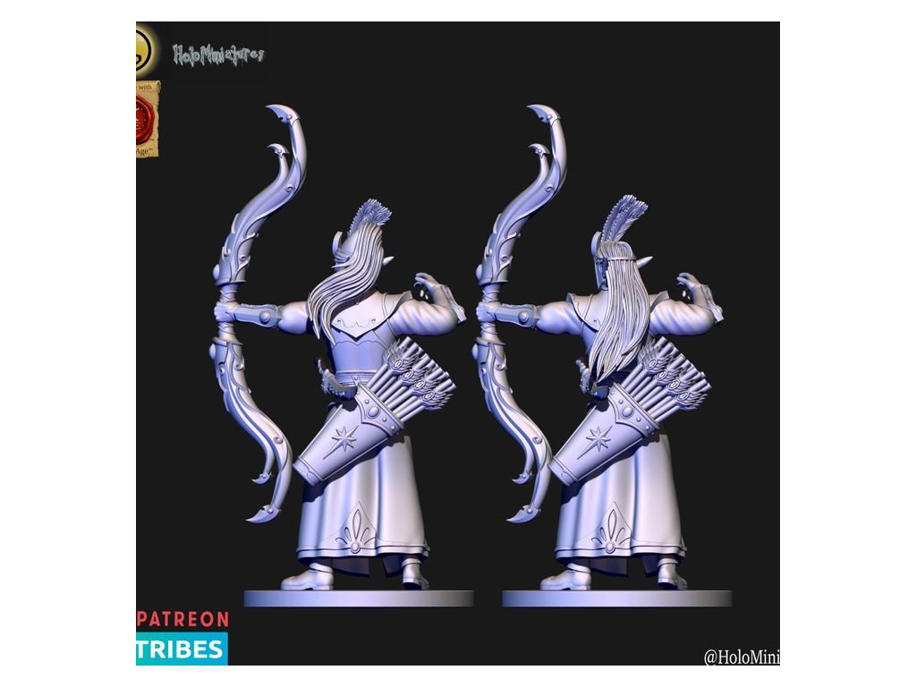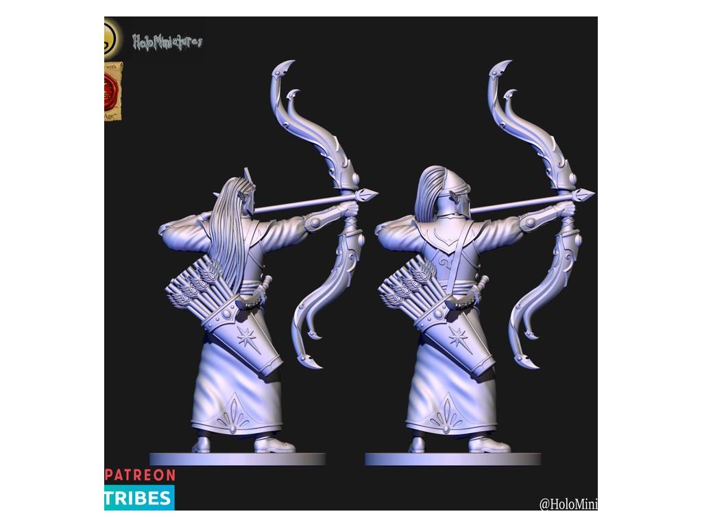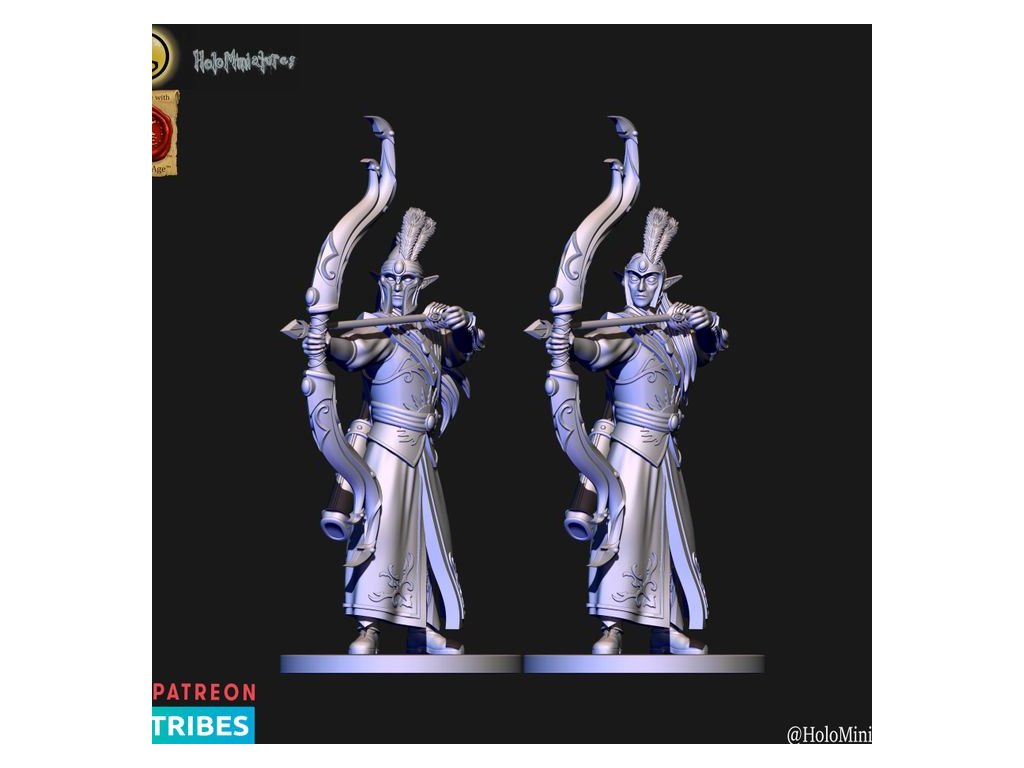 This pack contains 10x High elves archer miniature. Each has a version with or without helmet. Miniatures comes presupported in 28mm nad 32mm scale.