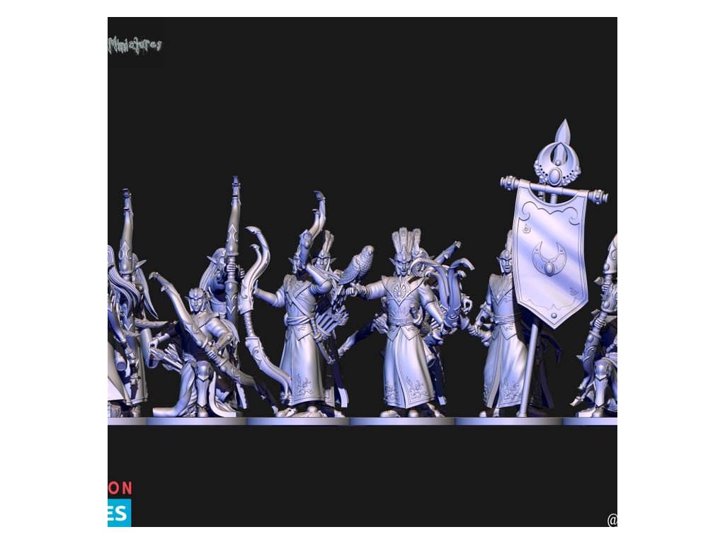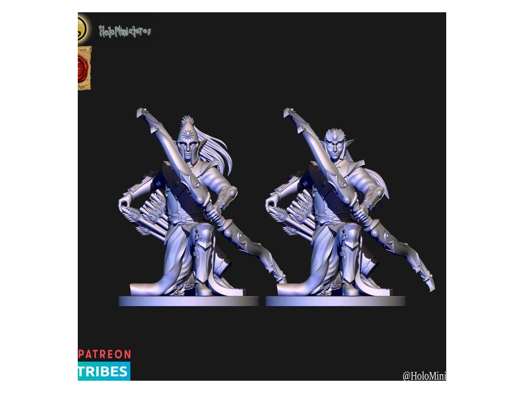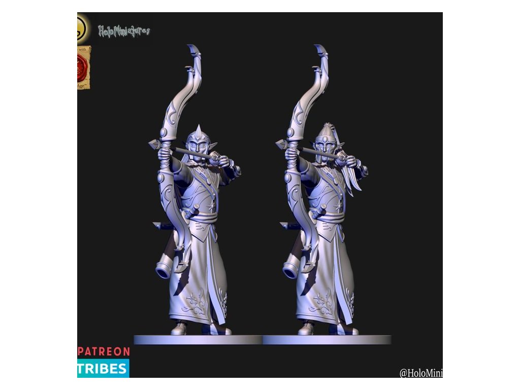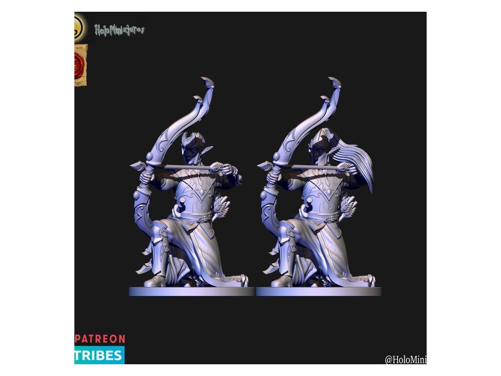 This pack contains 10x High elves archer miniature. Each has a version with or without helmet. Miniatures comes presupported in 28mm nad 32mm scale.