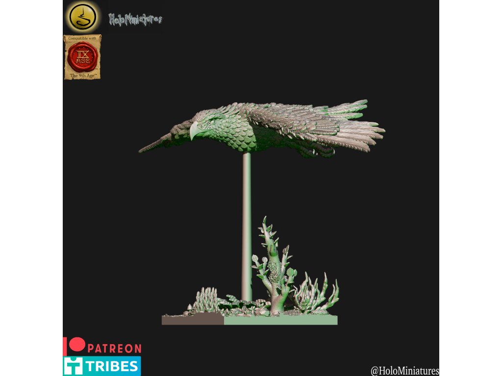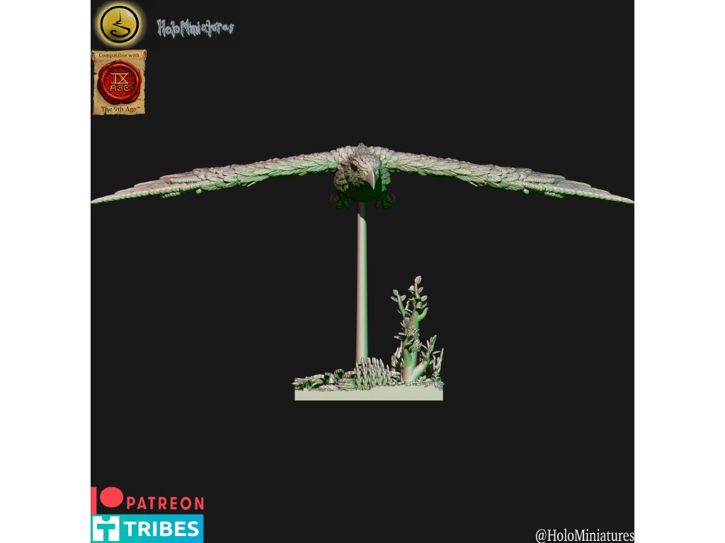 This pack contains 1x elven eagle. Miniatures comes presupported and with nice scenic bases as seen on the renders (both round and square).